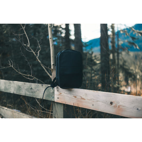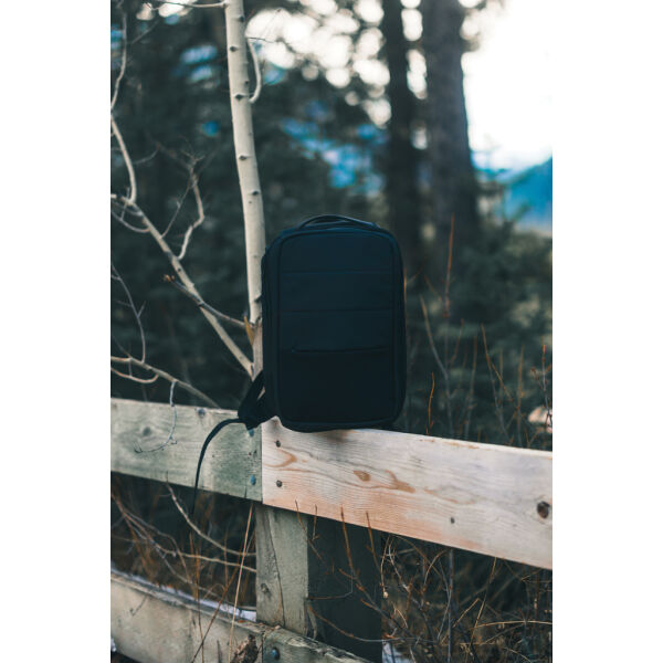 De Armond Aware™ RPET Free On Board Travel Pack is ontworpen voor de budgetbewuste of zakelijke reiziger. Deze rugzak is gemaakt van rPET met een PU-waterafstotende coating en is voorzien van AWARE-technologie. Aan de rechterkant zit een gewatteerd laptopvak van 15 inch, perfect voor MacBooks of kleinere accessoires. Het met RPET gevoerde interieur zorgt ervoor dat je spullen georganiseerd blijven, terwijl de verstelbare schouderbanden en het stevige handvat aan de bovenkant voor comfort en gemak zorgen. Met een voorvak met rits en een minitrolleyvak compleet met elastische riem is deze rugzak perfect voor zakenreizen of weekendtrips. Het compacte formaat past onder elke budget vliegtuigstoel, dus je hoeft je geen zorgen te maken over extra bagagekosten. Gemaakt met gerecycled polyester met AWARE™ tracer. 2% van de opbrengst van elk verkocht product met AWARE™ wordt gedoneerd aan Water.org. PVC-vrij.